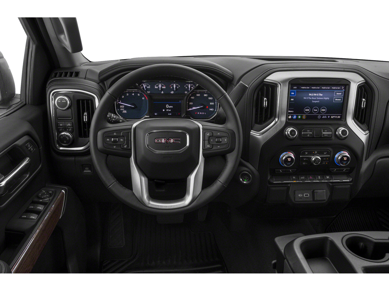 - Audio system, GMC Infotainment System with 8" diagonal color touch-screen, AM/FM stereo with seek-and-scan and digital clock, includes Bluetooth® streaming audio for music and select phones; featuring wired Android Auto and Apple CarPlay capability for compatible phones